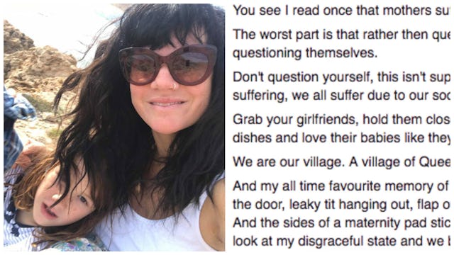 “Don’t question yourself, this isn’t supposed to be this lonely, you are not the only one suffering, we all suffer due to our society’s set up. Grab your girlfriends, hold them close, make dinner together, wash each other’s dishes and love their babies like they are your own.”