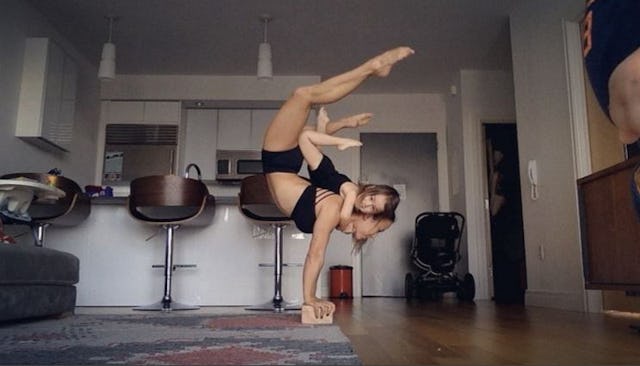 Akhmetova-Atherton is taking a break from performing in shows to focus on her family, but in the meantime her Instagram popularity is soaring. She’s gained a massive following of over 27,000 thanks to the gravity defying videos and pictures she posts of workouts with her daughter.