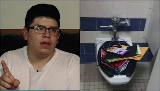 A new school year has just started, which means it’s time for our first reminder that school is the worst and bullies are the worst multiplied by forever. High schooler Alex Hernandez, who has been deaf since he was one-year-old, found the contents of his backpack, which included his school supplies, tablet computer, debit card, and a battery for the cochlear implant he needs in order to hear, in a bathroom toilet after someone stole the backpack while he was getting his food in the cafeteria.