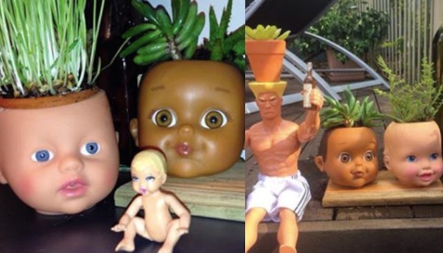 Planters. Made from the heads of old dolls. We’ve officially lost our shit and it’s delightful.