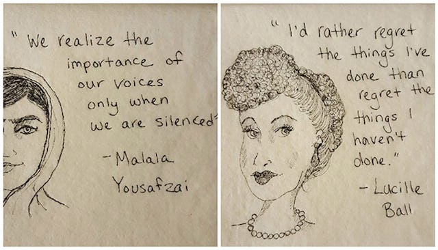But Elderkin’s images are more than just napkin doodles — they are truly moving, especially to those of us who have daughters. The drawings, and, more importantly, the act of one mom slipping a little bit of confidence and a reminder of self-worth into her little girl’s day, are an inspiration to us all to keep going. They remind us that we, as women, have been here before, and we can fight our way through it again. As one commenter put it, “From the smallest of acts to the greatest, we move forward.”