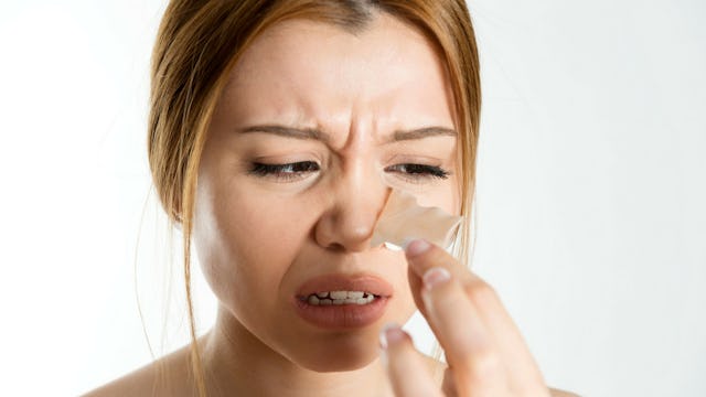 “Even if you pull the strip off gently, you are still tugging and potentially stretching your skin, which is a big anti-aging no-no,” Walter warns. All this without doing anything to actually treat the cause of blackheads. She also cautions that skin can be left red, flaky, inflamed, and even with broken capillaries where the skin is thinner. The corners of your nose and the skin below your eyes are prime spots for this to occur.
