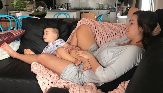 A-freaking-men. Moms are typically the family photographer, and that means moms are often left out of the picture — literally. In the age of smartphones, dads are every bit as able to take photos, yet, most don’t think to capture those little moments that aren’t part of a bigger holiday or event. Cachia’s husband just preserved a mundane mom thing — Cachia lying on the couch, idly stroking her little guy’s leg — and it’s beautiful. This is what every mom will want as her kids get older so she can look back on those special cuddles and un-posed memories.