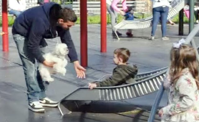 You know the one: A youngish guy conducts an “experiment” at a local playground (somewhere in Long Island, judging by the thick New York accents) with a cute little puppy in tow. He asks an assortment of watchful mothers sitting on nearby benches if they’ve schooled their kids about not talking to strangers. Every mom filmed that day replies “of course” before allowing him to approach their kids on the swings or the slide. They fully expect their children to come running back to the safety of their loving arms the moment he opens his mouth. Then they observe him from a safe distance, truly shocked as he easily leads away their kids—every single one of them—hand-in-hand, to go check out “his other puppies.”