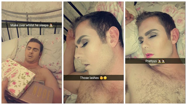 A receptionist in England was excited to have a Sunday funday with her boyfriend, but the plumber got a little to sauced the night before and slept through their date. So she took out her makeup kit and got to work.
