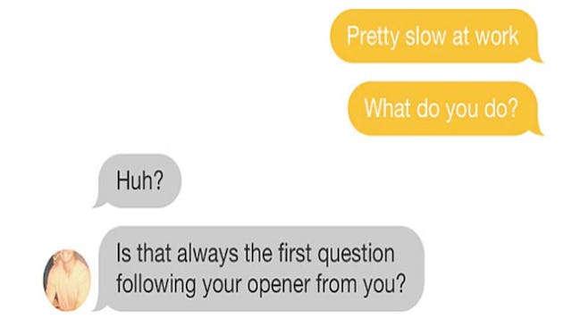“I don’t see anything nice about you prying into my career without even getting to know me as a person first,” the clueless bro wrote. Wait, what? Isn’t part of getting to know someone learning how they spend 40+ hours every week? As the conversation progresses, it’s clear this guy has very specific expectations as to how he wants women to speak to him.