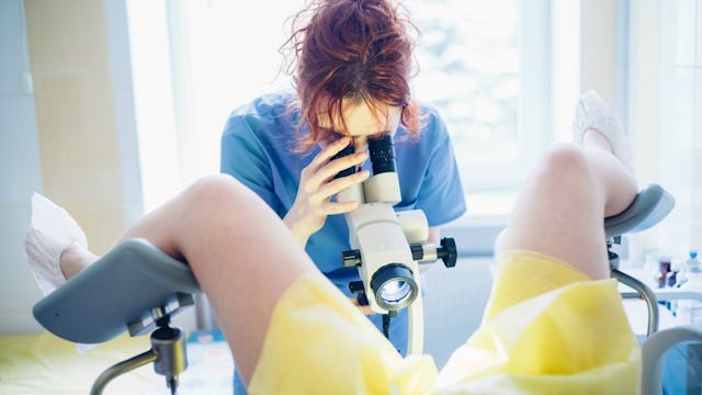 Instead of being at a nice restaurant or in a swanky hotel, I’m twiddling my thumbs and staring at framed pictures of flowers — right next to the posters advertising birth control and listing the warning signs of, like, gonorrhea. There are no rose petals or champagne in sight, but there’s an array of torturous-looking metal tools all laid out, flanked by tubes and swabs and rubber gloves.