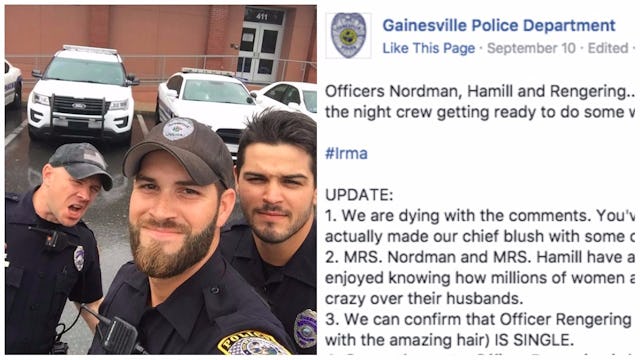 The Gainesville Police Department is here for all your hurricane recovery needs, and a recent photo they shared on their Facebook page before heading out to help residents post-Irma has plenty of women, um, needing things.
