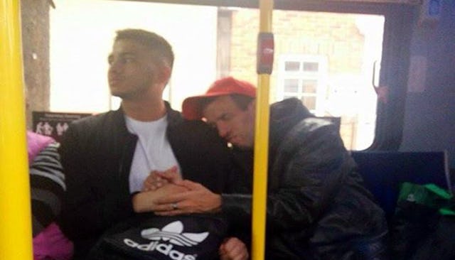 The person who took the photo shared it on a Facebook page called Only In Hamilton and wrote, “I didn’t know if u can post this but I would liking [sic] to say thank you to the guy who was seating [sic] beside a special needs gentleman… He allowed him to hold his hand and find comfort well in a packed bus. It makes my day when I see stuff like that.”