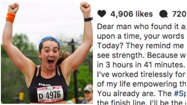 “Once upon a time, your words would have cut me like valyrian steel. Today? They remind me how important it is to change the way we see strength. Because what you call fat, I know can run a marathon in 3 hours in 41 minutes. I hope one day you can obtain the strength I’ve worked tirelessly for. Until then, know that I will spend the rest of my life empowering the women you hope to shame.”