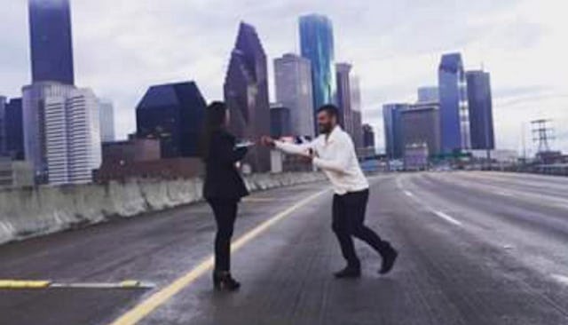 Everyone loves a good proposal story, but this one about a Texas couple who blocked traffic on a major freeway while they got engaged kind of seems like the opposite of that. According to Buzzfeed, Houston resident Vidal Valladares Navas wanted to propose to his girlfriend, Michelle Wycoff, in a special way. He knew she loved a certain spot along I-45 — one of the busiest freeways in the country — so he decided, what the hell? He’d just go ahead and propose right there.