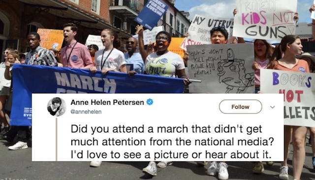 “Did you attend a march that didn’t get much attention from the national media?” she wrote. “I’d love to see a picture or hear about it.”