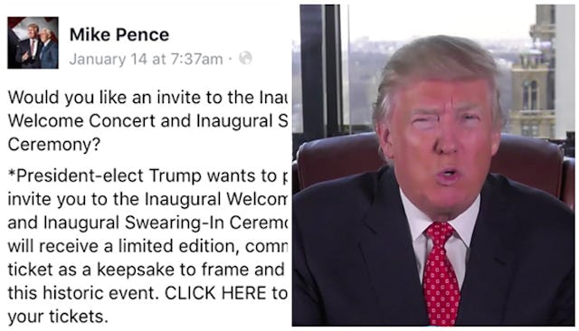 Vice President-Elect Mike Pence posted a video of President-Elect Donald Trump asking people to come to his inauguration event. It’s basically an infomercial — for an inauguration. It’s sad. What’s even more sad is that Pence forgot to disable comments.
