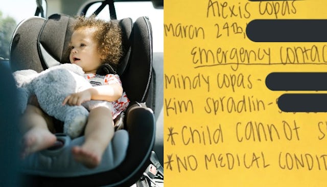 According to the CDC, motor vehicle injuries are a leading cause of death among children in the United States. And while we all know about the importance of using a car seat and proper restraints in preventing death or serious injury, a note like Copas shared is another small way parents can ensure their child is being cared for immediately in the event they’re unable to speak their behalf.