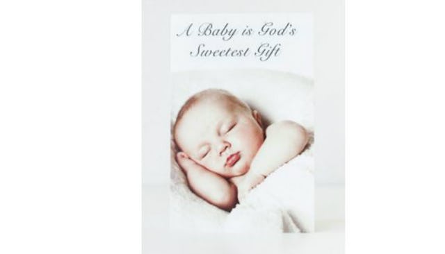 The baby shower prank card was developed by the evil geniuses at Joker Greeting, and it looks like an ordinary baby shower card. Actually, it looks pretty sentimental and schmaltzy. The front of the card features an adorable photo of an angelic sleeping baby, and it says, “A Baby is God’s Sweetest Gift,” in curly, formal script.