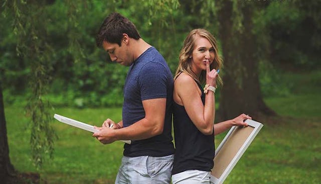 The “plan” was that the couple would each write three words about each other on a chalkboard, then hold the chalkboard up for the photo. Cute idea, right? Not as cute as what was actually brewing behind the scenes.