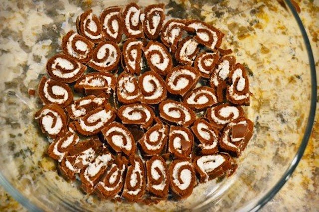 Two boxes of Yodels (or Swiss snack cakes), each cut into six slices