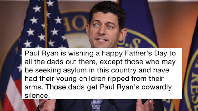 It’s impossible not to think of all the immigrant parents who are separated from their children every day, but on Father’s Day especially. While a majority of American fathers celebrate the day with barbecues and golf, there are thousands of fathers being separated from their children at the U.S. border. Paul Ryan doesn’t seem too troubled by this tragedy, as he’s being lambasted on Twitter for posting a Father’s Day message from his point of privilege.