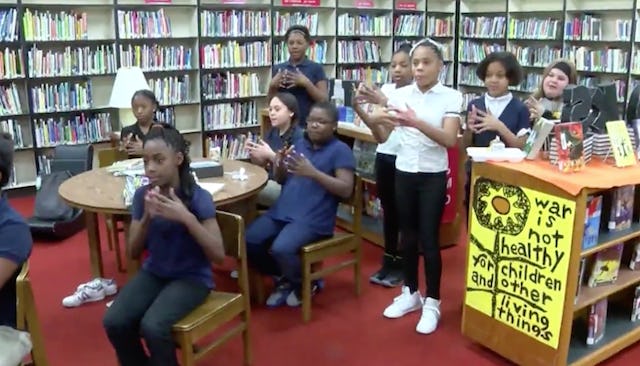 According to WMBD, the students have been meeting with Arvin every Wednesday during recess for the past four months so they can learn and practice new signs for Rhemy. Arvin teaches them common words and phrases, like “how are you,” but she also coordinates her lessons to whatever they’re studying in their regular classes. She says that, for her, one of the best parts has been seeing how eager the students are to learn.