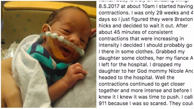 Seven minutes later, they arrived at the hospital. The expecting staff whisked EJ away to the NICU to assess his condition. “He was 3lb 1oz.,” the new mom wrote. “He doing wonderful all things considered.”