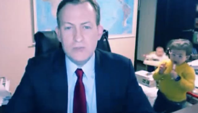 Those few seconds of video are parenting in a nutshell. Your kids don’t give a single shit that you’re an expert on security in northeast Asia and US foreign policy appearing on the fucking BBC. Nor should they.