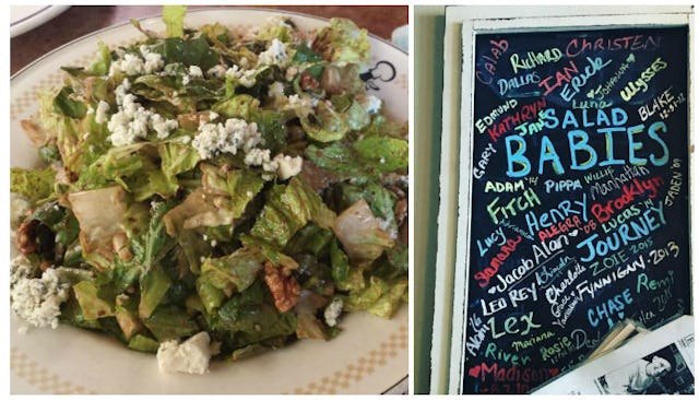 The cafe doesn’t make any official claims that The Salad will cause your contractions to hurry up and get here, but the proof speaks for itself. There’s a plaque on the wall filled with the names of babies who made their debut right after their moms noshed on a salad. In fact, Carson Daly’s wife, Siri Pinter, tried the salad in order to induce her labor. She gave birth to daughter Etta Jones just two days later.