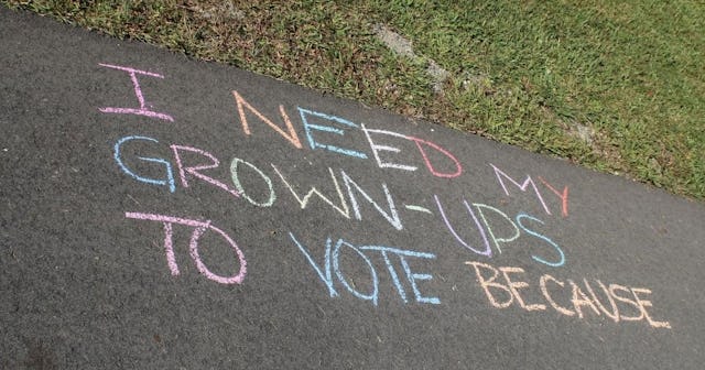 We know you’re tired of hearing how important the upcoming election is but like, it’s really really important. So to continue to remind everyone of the seriousness of the day, but also infuse it with some fun and creativity, ParentsTogether — a national nonprofit organization made up of more than 2 million parents across the country — created #ChalkTheVote. #ChalkTheVote encourages families to spend time together making chalk murals in their neighborhood that also encourage people to go out and vote.