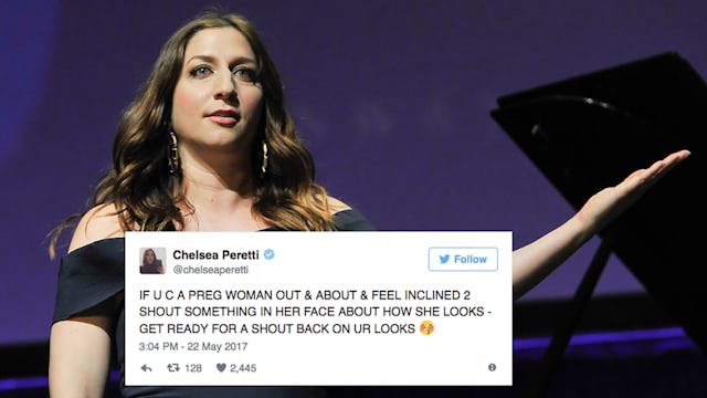 Leave it to Chelsea Peretti to set us all straight on the matter. The Brooklyn-Nine-Nine star and one of our favorite comedians took to Twitter to expertly and hilariously school everyone on the matter of commenting on a pregnant woman’s body (the Cliff’s Notes version: DON’T).