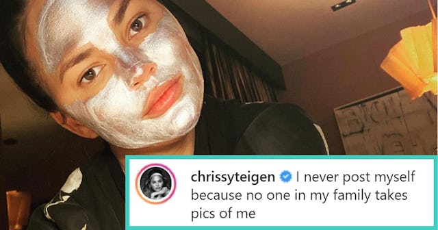 Time and again, supermodel, cookbook author, wife of the Sexiest Man Alive, and overall badass Chrissy Teigen has proven to be the most relatable celebrity mom on the internet. Despite the fact that her life is a billion times more glamorous than most of ours, she totally feels our pain when it comes to everything parenting related — from the fact that her sex life has been negatively impacted since having kids to how how her kids give her crap for being one minute late to school pickup. In her latest celebrity-moms-are-just-like-us moment, Teigen reveals why her Instagram account is filled mostly with photos of John and the kids, sprinkled with the occasional selfie, and it’s relatable AF.