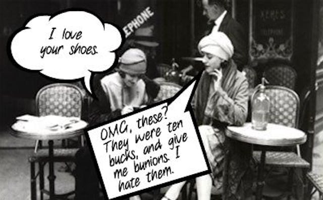 “Oh please, it’s just these jeans I’m wearing. I live in them because they hide all the rolls I have under them. Luckily, they were on a sale or I never would have bought them.” (G-d forbid we told someone we paid retail.)