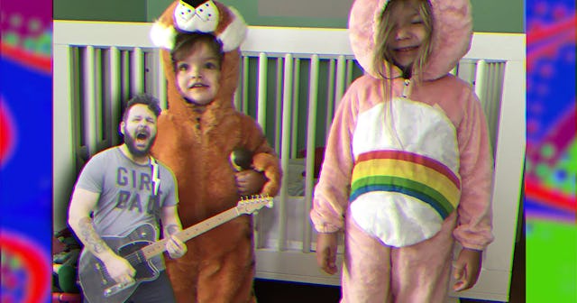It’s not often punk rock makes you dissolve into this-is-the-cutest-thing-ever tears. But Mike wrote “Little Birds” for his two daughters, Fiona Wren (age 8) and Thora Lark (age 6). He told Scary Mommy he wanted his video to look like “a corny graduation-type video” complete with photo montage. “It’s supposed to look dopey,” he says. “A friend said it has ‘Trapper-Keeper energy.'”