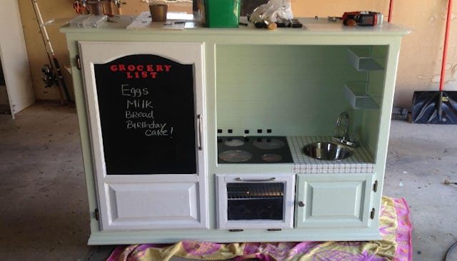 Reddit user sixstringhook posted an incredible tutorial showing all the steps necessary to turn a crappy, old entertainment center into a stunning, custom play kitchen for a child. I’m jealous and wish someone had built one for my kids when they were younger. Check out his handiwork and get ready to drool.