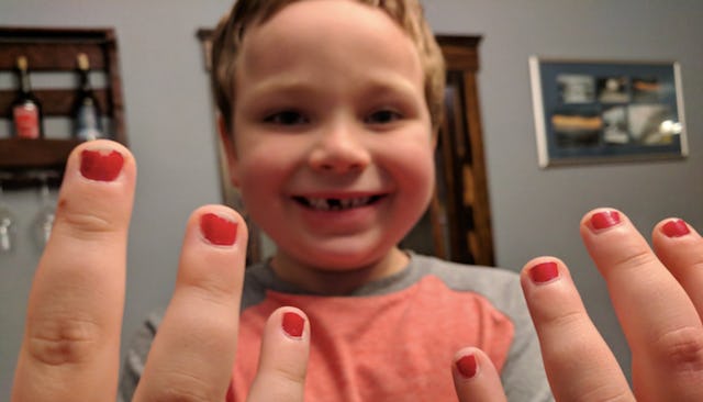 Since he posted about Sam’s experience, it’s gone viral with tons of positive support coming back for the little boy. “I’m really grateful for the wonderful and kind response and all the people who have reached out with support, their own stories, and lots of pictures of men and boys with painted nails,” Gouveia tells Scary Mommy. “I showed them to Sam early this morning and read him some of the supportive tweets, and it meant the world to him. He was on the fence about wearing his red nails to school this morning but seeing all the positivity helped him decide to do it.”
