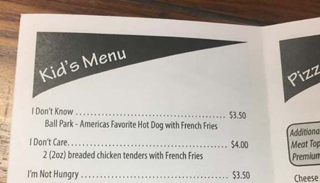The menu is perfect and really drives home what all parents know: your kid wants fries. The end.