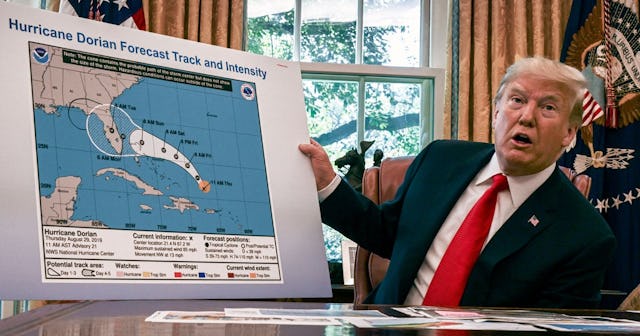 Which leads us to the forecast map that someone altered with a Sharpie. We can’t say who, but, um, only one person actually thinks Hurricane Dorian is going to hit Alabama, so that might be a hint.