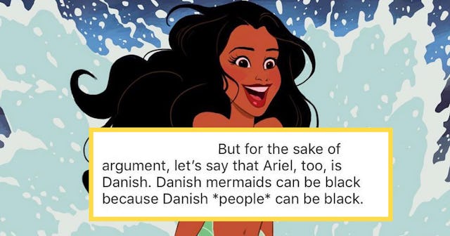 “Yes. The original author of The Little Mermaid was Danish. Ariel…is a mermaid. She lives in an underwater kingdom in international waters and can legit swim wherever she wants…But for the sake of argument, let’s say that Ariel, too, is Danish,” the post began. “Danish mermaids can be black because Danish *people* can be black. Ariel can sneak up to the surface at any time with her pals Scuttle and the *ahem* Jamaican crab Sebastian (sorry, Flounder!) and keep that bronze base tight. Black Danish people, and this mer-folk, can also *genetically* (!!!) have red hair.”