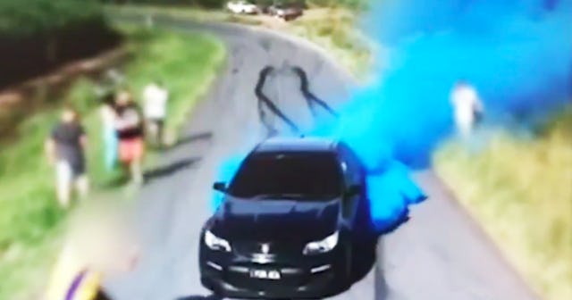 During these “burnouts” a powder is released onto the tires of a car which ignites into a colorful plume of smoke as the tires spin out. A family in Queensland, Australia did one of these burnouts to announce the birth of their baby boy and the car caught on fire.