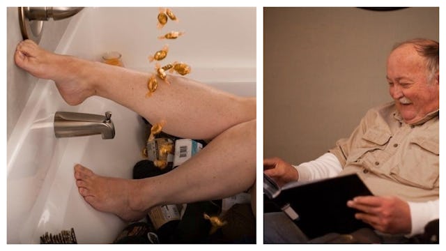 “I’m a boudoir photographer and my mom and I talked about doing a shoot,” Samantha tells Scary Mommy. “She said she’d only do one if we could do it in a bathtub full of yarn.”