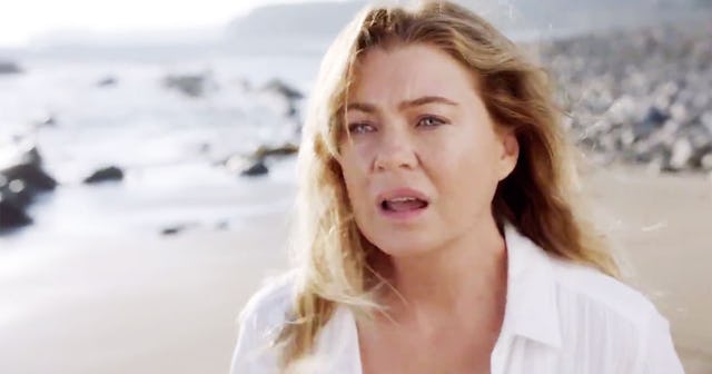 And that’s where it cuts to the good parts. The scene switches to a beach, where we see Meredith, standing calmly, watching the waves. The trademark Grey’s Anatomy acoustic pop song swells. We hear someone calling her name…