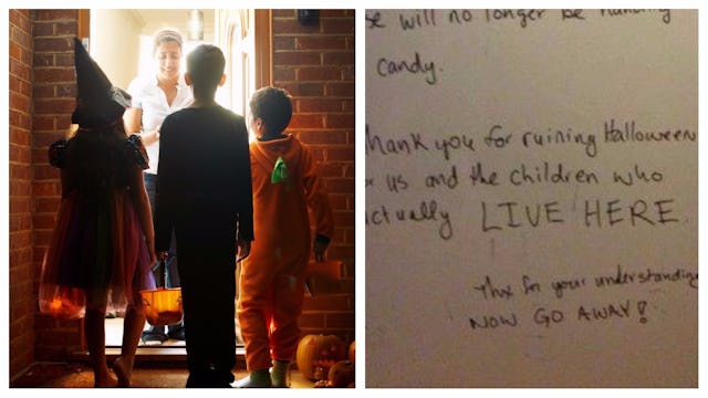 Halloween is a time for haunted houses, dressing up, and one of a handful of days where it is perfectly acceptable to eat candy for dinner. But one family’s sign feels decidedly more like Scrooge came early and decided to set up shop for the festivities, refusing to hand out candy if a kid isn’t from their neighborhood.