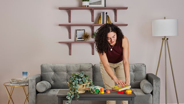Stowing kids’ stuff and keeping things from piling up on the coffee table doesn’t mean you can’t have throw pillows, candles, or seasonal decor. There’s a happy medium between “stuffed to the gills” and “stark and echoey.” You can find that balance we’re all seeking and live in a space that’s both welcoming and unfussy.