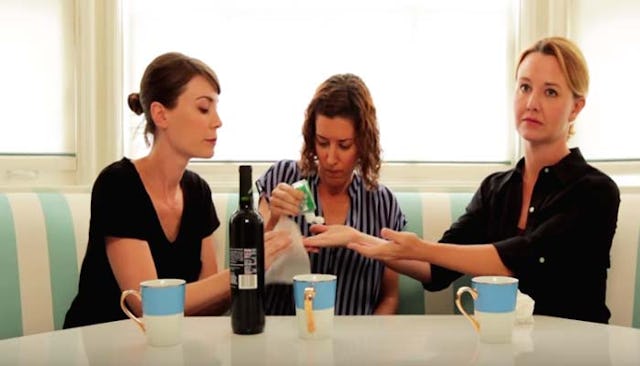 Wait. No. You still have wine to drink. Finish the wine that I already gave you, and then you can ask me for more and I’LL pour it for you, okay?