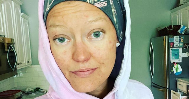I’m not down with “keeping up appearances.” Whom am I trying to impress? Most of my hair has fallen out, I have horrible chemo acne, and I’m suffering from about ten other chemo side effects. I am absolutely not fine. I’m not ok. My world has been turned inside out and upside down. I joke to my husband that I look like a swamp monster — but I’m supposed to slap a smile on my face and tell people I’m cool? No. Just no.