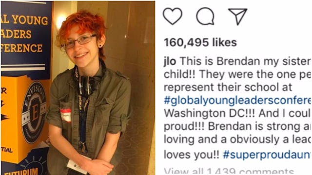 Lopez’s post had nothing to do with Brendan’s gender, it was about their accomplishments and how proud she is to be their family, but in doing so showed respect to Brendan as a person. “Brendan is strong and smart and loving and … a leader!!” Lopez concluded in the caption. “Titi Jenn loves you!!”