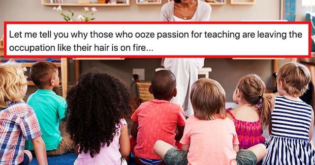 “Let me tell you why those who ooze passion for teaching are leaving the occupation like their hair is on fire,” she writes.