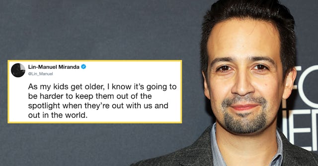 Hamilton creator and all-around musical genius Lin Manuel Miranda knows his fans love him. He also knows that being extremely famous and a coveted American treasure means his fans are always going to want to snap photos of him or with him. And since he’s very much an out-and-about New Yorker, he’s cool with it. But he’s not so cool with fans taking photos of him with his kids — particularly his 4-year-old son, Sebastian. Which is why he addressed the matter directly (and so very earnestly, natch) today on Twitter.