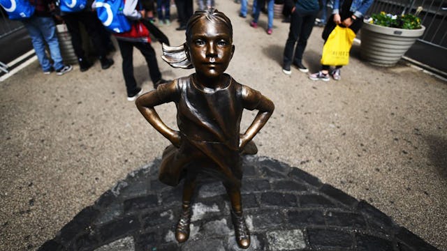 Many women were quick to point out that although the statue was commissioned by an advertising firm, it took on a life of its own and women really do not need him mansplaining why the little icon is not feminist — or “disrespectful” to the original, male artist. Kristin Visbal, the artist who created the girl, said she views it as a piece “that every woman can and should relate to. The bull is symbolic of every issue coming down the pike, that they can stand firm and hold their ground and deal with it.”