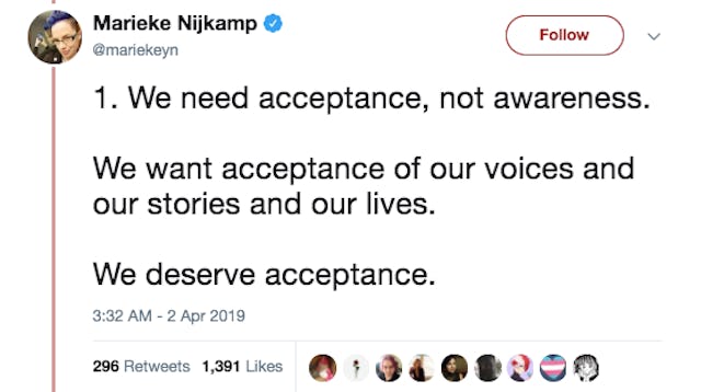 This is far from the first time Nijkamp has opened up about being on the spectrum or been active about autism. She’s a founding member of We Need Diverse Books, which works to make sure all children can see themselves in the pages of their books, and the editor of Unbroken, an anthology of stories that star teens with disabilities.