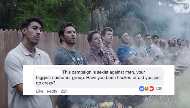 Well, no, not according to the very men who should be shutting up and paying attention to that ad. They’re all over the internet whining about it, because of course they are.