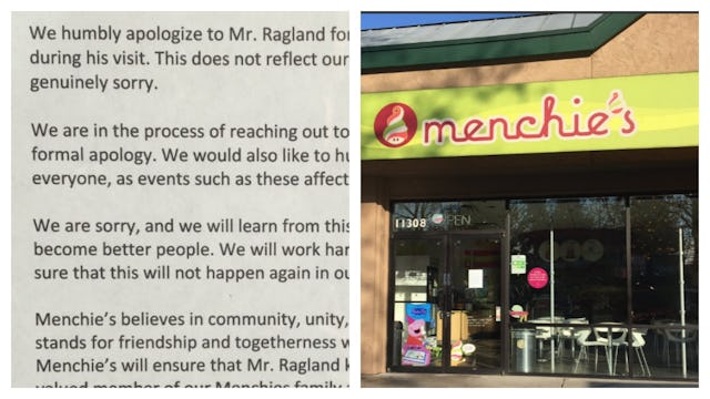 “You want to stand up for yourself, as a man, or as someone who was just doing his job, and say ‘Hey, this isn’t right,’” he said. “But in the moment I’m thinking I’m a black man, and if I start emoting, I might not walk out of here. And so you rationalize to yourself. What’s the big deal, it’s just Menchie’s, just leave. But then later, you realize that you gave in — that you consented that this is the way it’s going to be, to always be.”